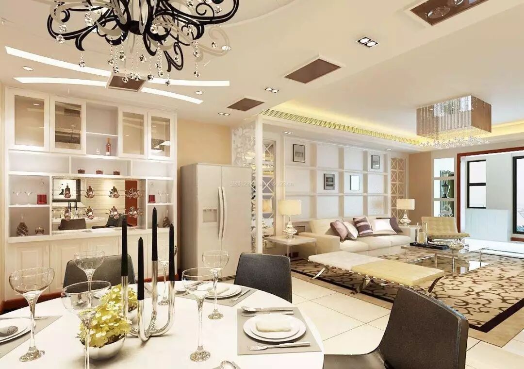 大尺度餐厅客厅一体空间